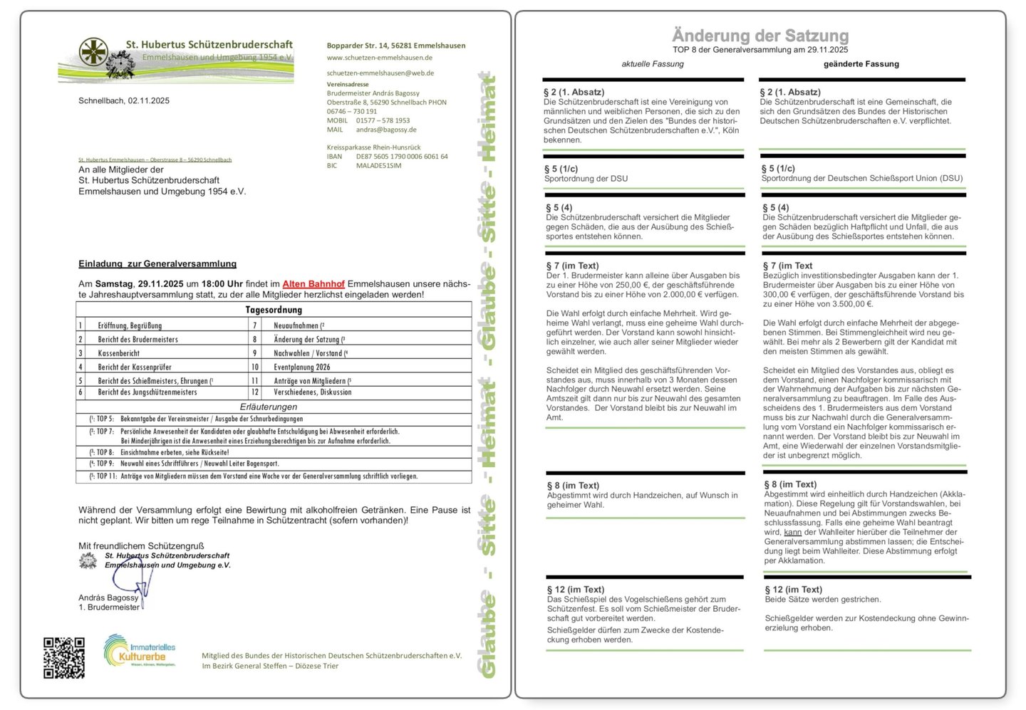 Samstag, 29.11.2025 - Generalversammlung 2025 - im "Alten Bahnhof" Emmelshausen